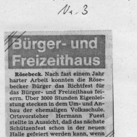 Zunächst wurde der Umbau des alten Volksschulgebäudes vorgenommen. Die Begeisterung war groß und in relativ kurzer Zeit war dieser Akt erledigt. Es traten zwischendurch Phasen der Verzögerung ein, die verkraftet werden mussten. Entsprechendes Durchstehvermögen und gemeinsame Anstrengungen brachten die Rösebecker zum Ziel, eines Bürgerhauses bzw. einer Bürgerhalle, das bzw. die den Ansprüchen und Interessen in vollem Umfange entsprach.