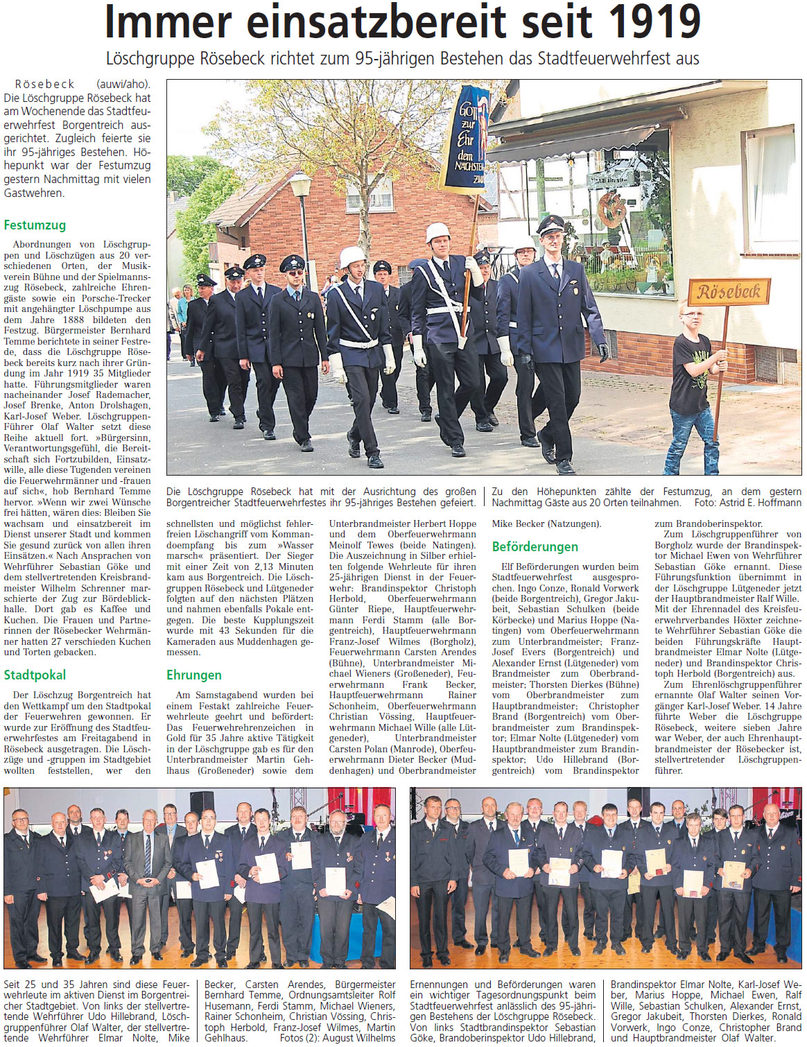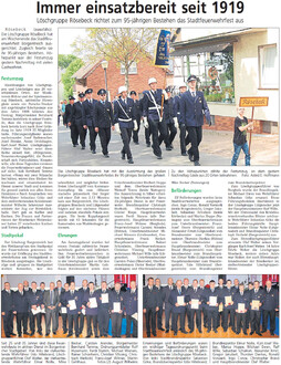 Stadtfeuerwehrfest in Rösebeck (95-jähriges Bestehen) 16. - 18.05.2014 Weitere Infos unter: > www.roesebeck.net/feuerwehr < Presseartikel Westfalen-Blatt vom 19.05.2014: